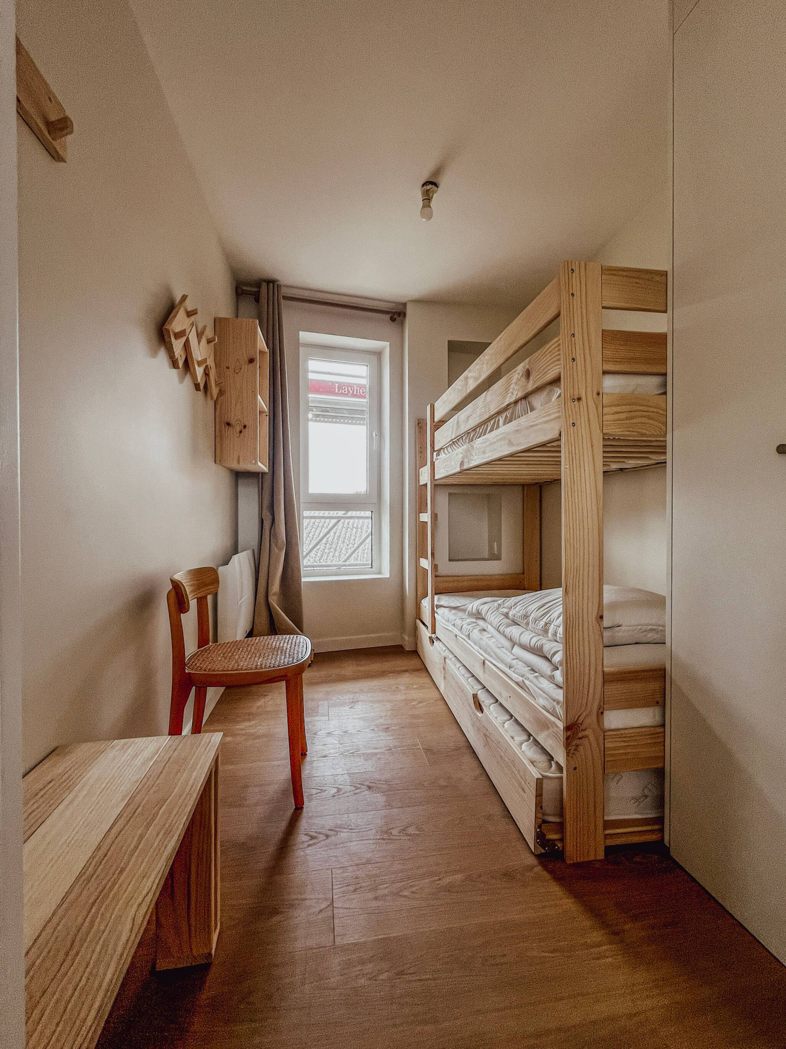 1 smaller bedroom with bunk beds (90x200), near the living area
